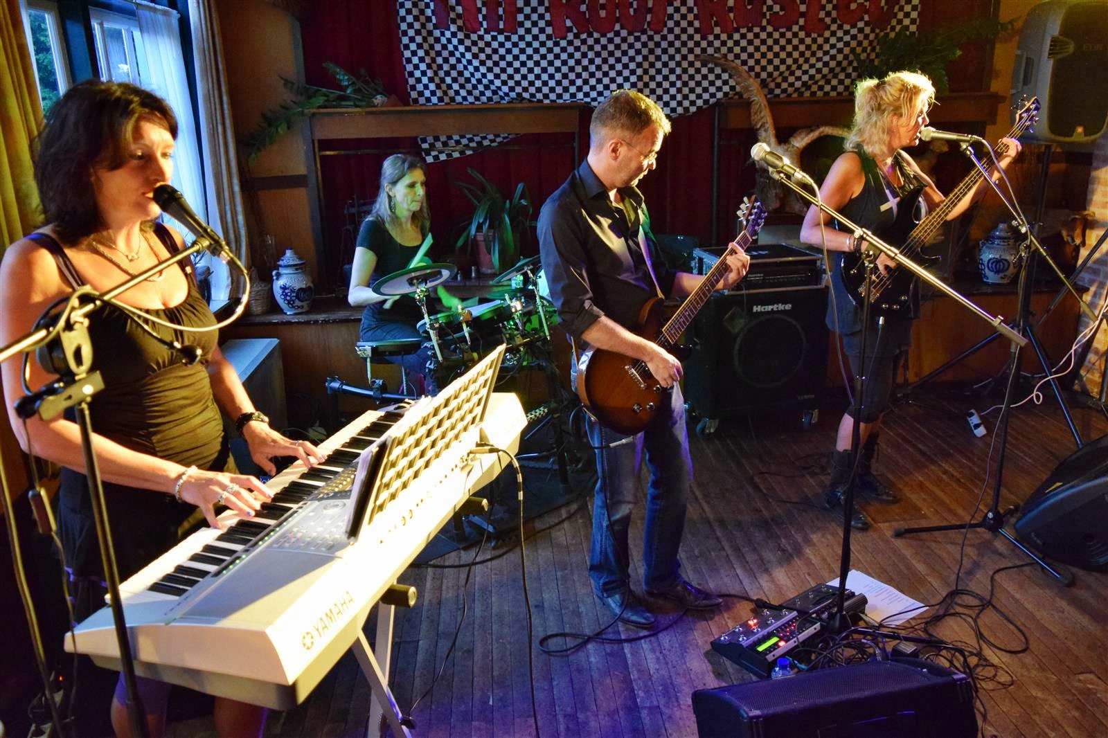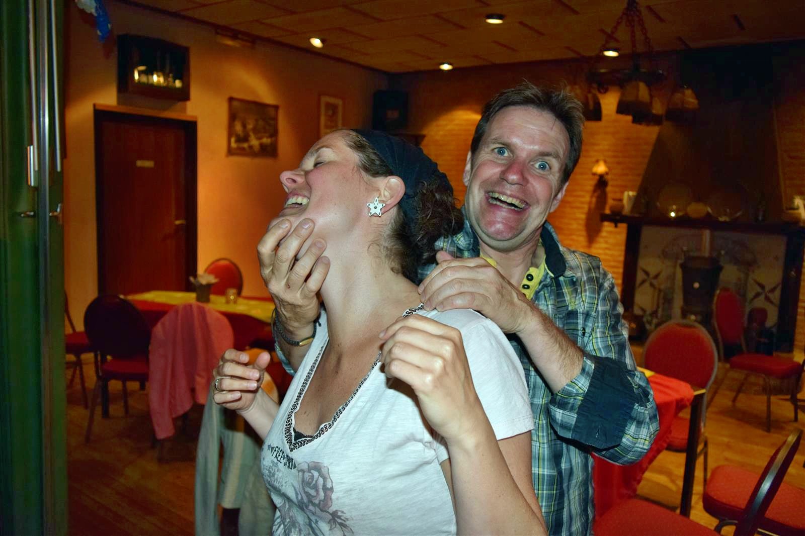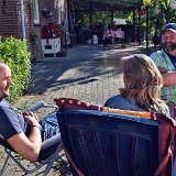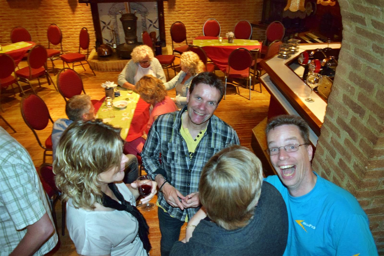 Gerard, Marianne, Dirk en Jantine zitten in nde B&B bij ons in de straat