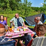 Alle kampeergasten arriveerden 's middags. Even een T-shirt passen