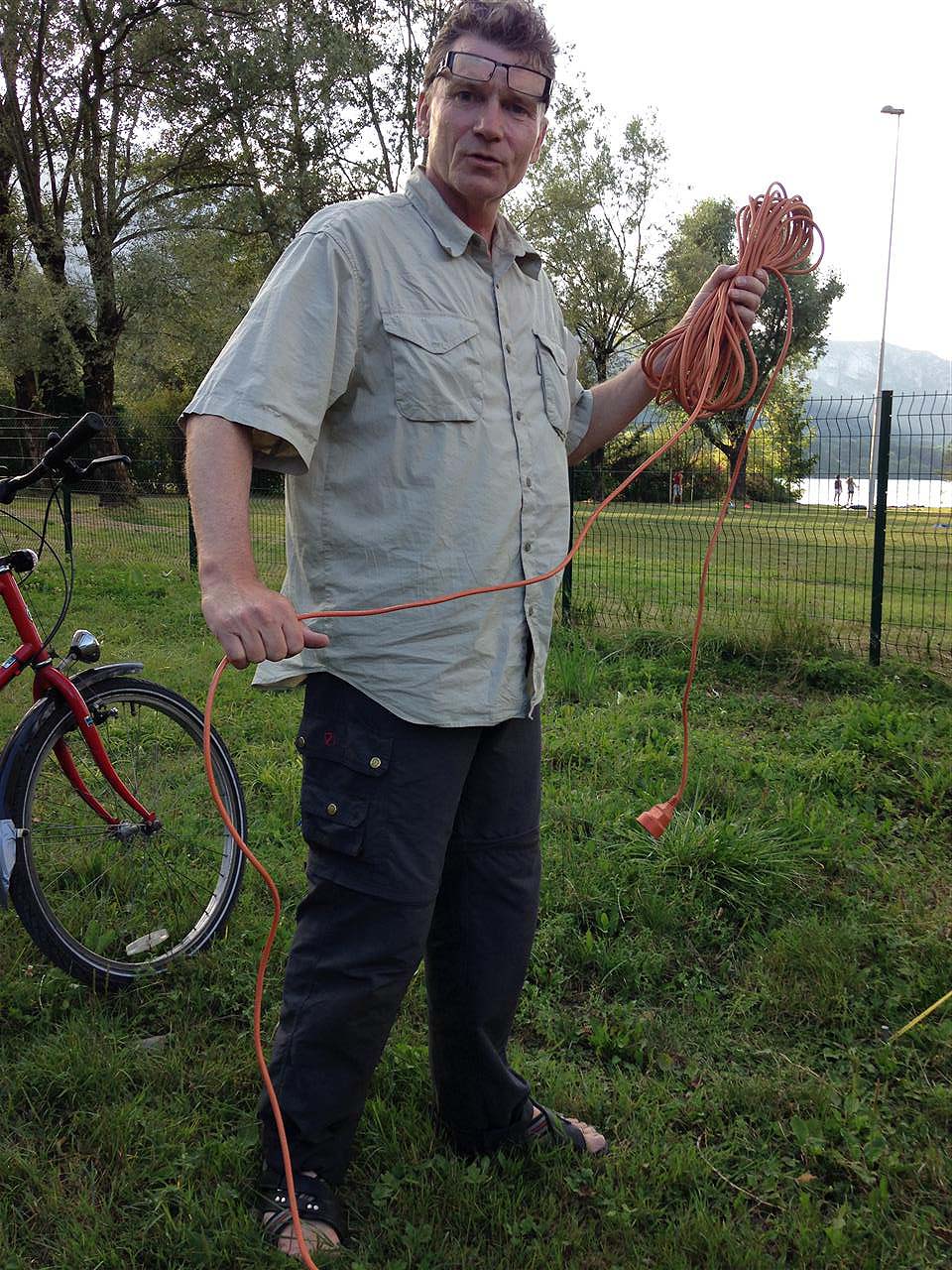 Stefke vroeg ontbijten want hij gaat naar de startplek lopen met pakzak.